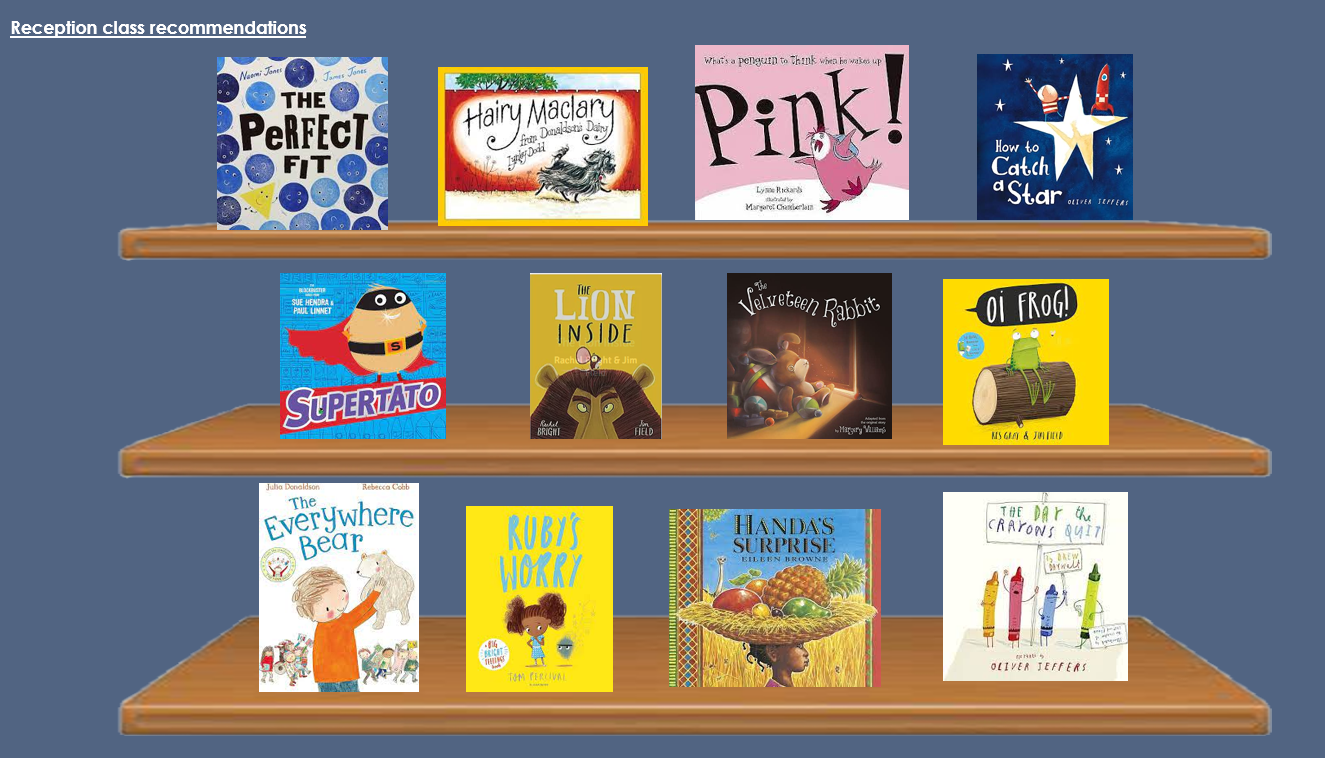 We have produced a list of recommended books for each year group. We hope you enjoy as many as possible!
